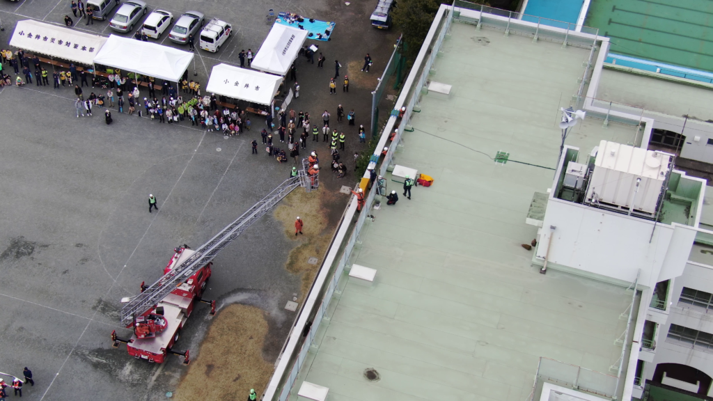 令和7年11月2日に実施しました、「令和7年度こがねい防災フェスタ(総合防災訓練)」において、弊社技術「UAVによる点検情報提供システム(NETIS登録)」を活用して小金井市役所と情報共有訓練を行いました。