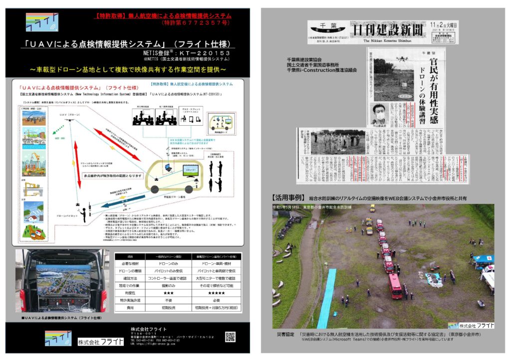 令和7年12月2日(火)「小金井宮地楽器ホール」で開催しました、「武蔵野エリア販路開拓事業2025 (製造業/新技術&事業方針合同記者発表会~)」にて弊社技術「UAVによる点検情報提供システム(NETIS登録)」をプレスリリースしました。